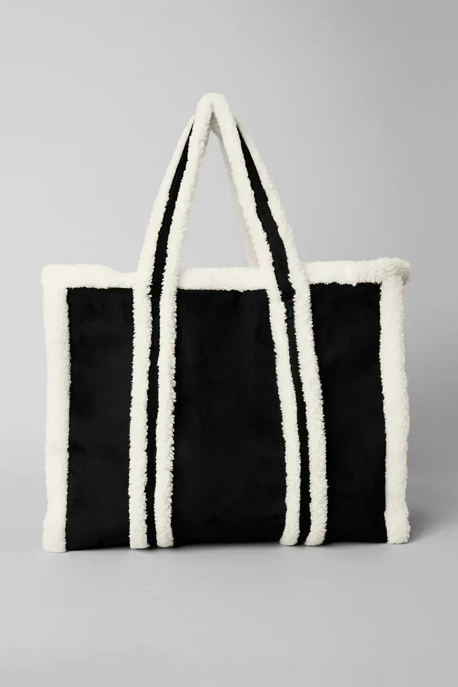 Deze comfortabele tas is gemaakt van soepel, suède-achtig materiaal met een duurzame voering en een zachte Sherpa-afwerking. Het soepel gestructureerde ontwerp heeft een ritsvak, een magnetische sluiting en een afneembaar Sherpa-etui. Qua formaat is de tas ruim genoeg voor een weekendtas, en dankzij de drukknopen aan de zijkanten kan hij smaller gemaakt worden voor dagelijks gebruik.